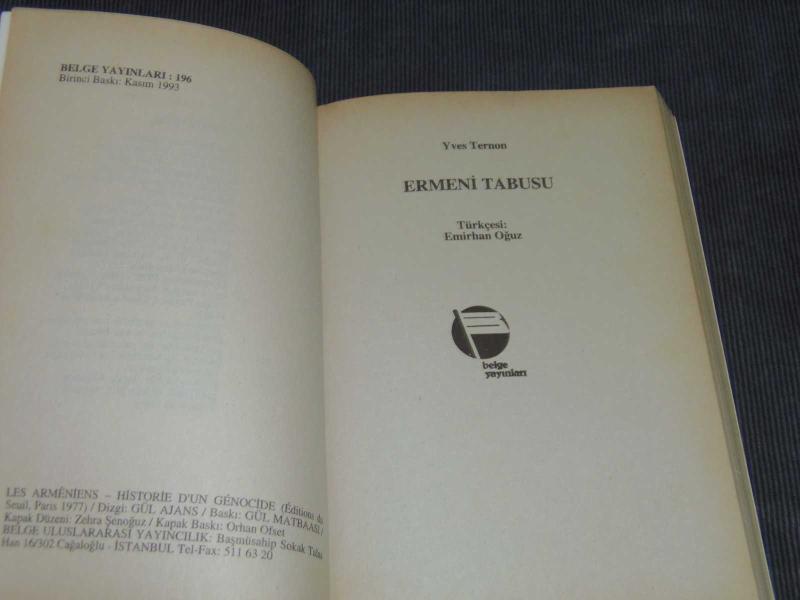 ERMENİ TABUSU - YVES TERNON - BELGE YAYINLARI 1993 YILI İLK BASKISI KİTAPTIR, YVES TERNON tarafından kaleme alınmıştır. ERMENİ TABUSU - YVES TERNON - BELGE YAYINLARI 1993 YILI İLK BASKISI KİTAPTIR adlı eser Türkçe dilindedir.