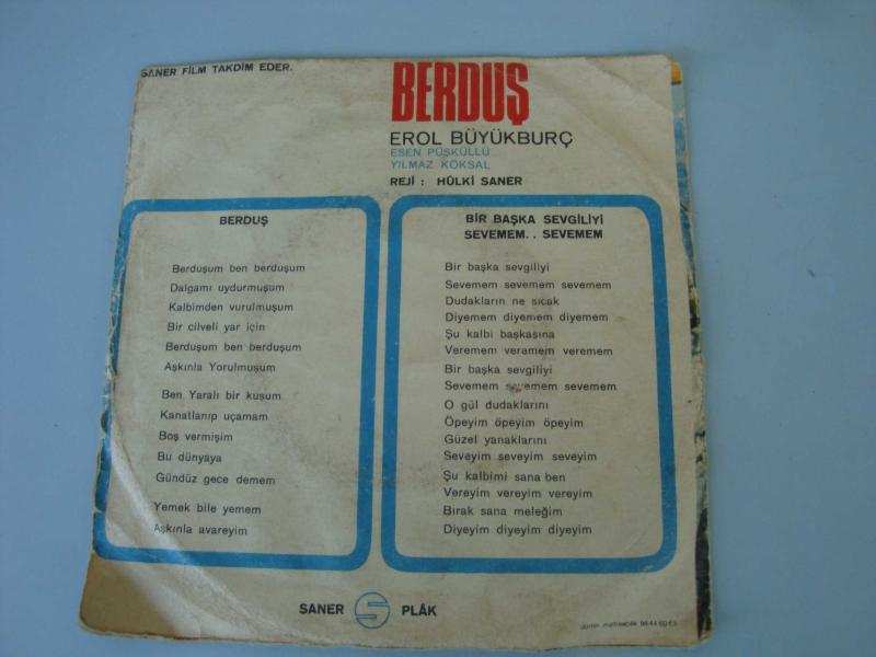 EROL BÜYÜKBURÇ " Bir Başka Sevgiliyi Sevemem ,, Sevemem - Berduş " 45 RPM ( SANER PLAK ) Orj. Kapak : 7 - Plak : 7,5 ( Göbeksiz ) Kapak fena değil , Plak TEMİZ durumda ..