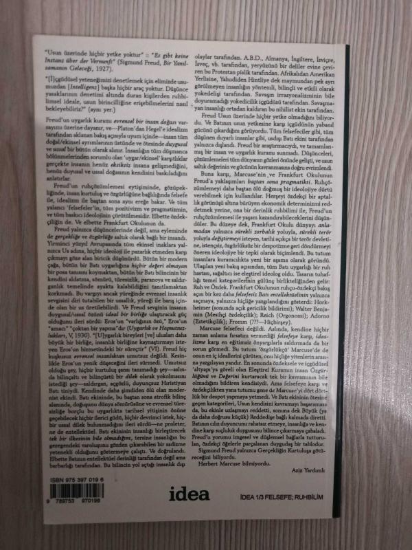 EROS VE UYGARLIK-HERBERT MARCUSE adlı eser, Kitap > Sosyal Bilimler > Felsefe > Akımlar kategorisinde İkinci El olarak satıştadır.