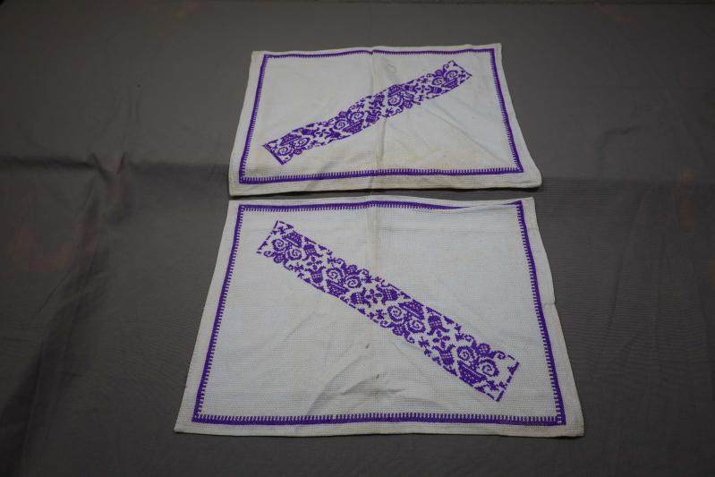 EŞ İŞLEMELİ ETAMİN YASTIKLAR başlıklı antika/koleksiyon objesi Türkiye menşe’lidir. 1950-1999 arası dönemine aittir.