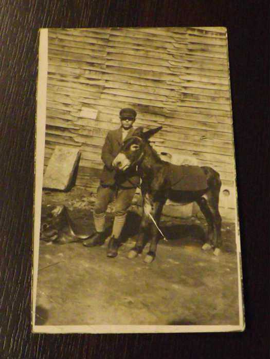 ** EŞEK VE GENÇ TEMALI ESKİ FOTOĞRAF ** Kartpostal boyutunda,arkası yazısız,ortadan çatlak,gerisi temiz,siyah-beyaz fotoğraftır...