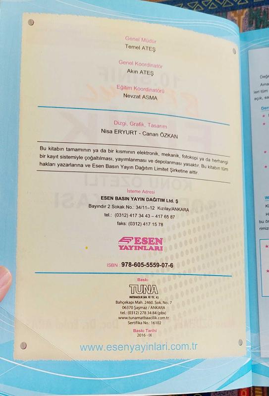 Kitap 2016 yılında ESEN YAYINLARI tarafından yayınlanmıştır. 480 sayfadır. ESEN YAYINLARI, 10. SINIF FİZİK KONU ÖZETLİ SORU BANKASI adlı eser Türkçe dilindedir.