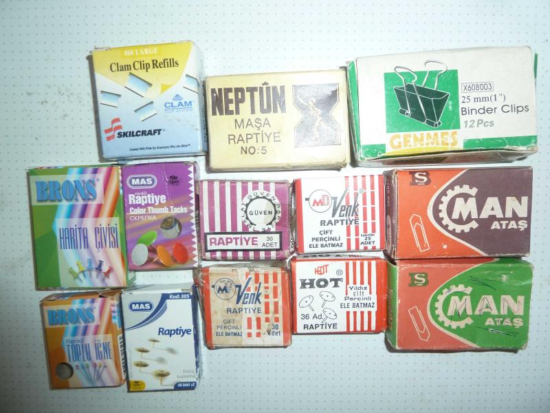 ESKİ BAKKALİYE RAPTİYE HARİTA ÇİVİSİ KAĞIT MAŞASI ATAŞ KLİPS TOPLU İĞNE 13 PAKET HEPSİ DOLU, en son 7 ay önce güncellenmiştir.