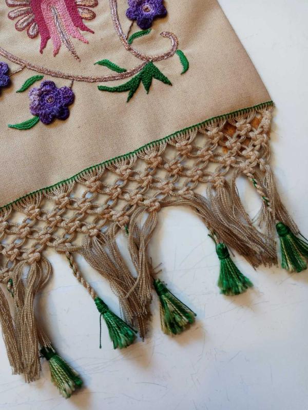 ** ESKİ BİR ELİŞİ EMEKLE YAPILMIŞ DUVARA ASILABİLEN İĞNEDAN ** Uzmanının verdiği bilgiye göre,el işi,alt kısmı tığ işi (Örümcek model denilen), 39 x 17 cm.boyutunda,sarma işi ve Çin işi karışık bir iğnedan... Oldukça eski olduğu söylendi.. Üzerindeki emek önemli..