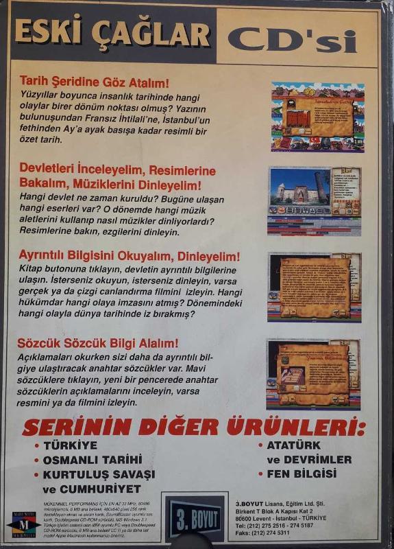 ESKİ ÇAĞLAR CD' si Dinazorlar Döneminden Mısır Uygarlığına .Roma İmparatorluğundan Selçuklu Devletine Eski Çağlara Yolculuk Film Müzik, 3 Boyut tarafından kaleme alınmıştır. Kitap 3 BOYUT tarafından yayınlanmıştır. ESKİ ÇAĞLAR CD' si Dinazorlar Döneminden Mısır Uygarlığına .Roma İmparatorluğundan Selçuklu Devletine Eski Çağlara Yolculuk Film Müzik adlı eser Türkçe dilindedir.