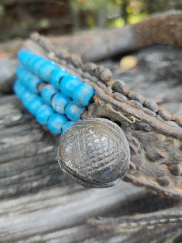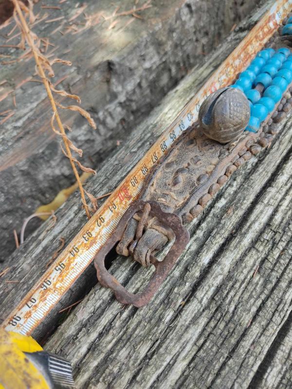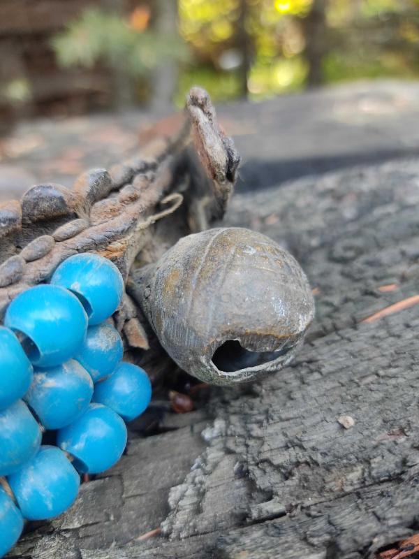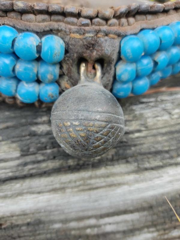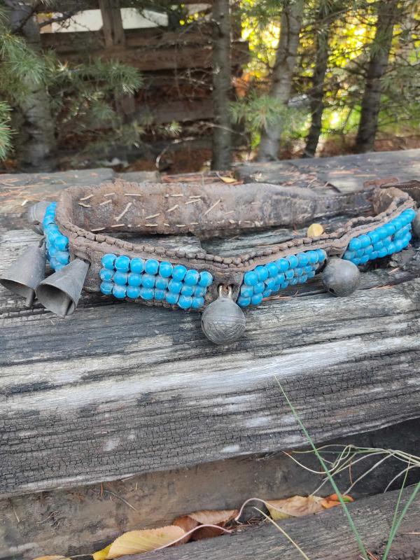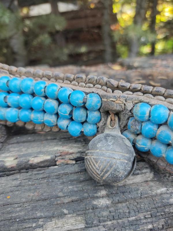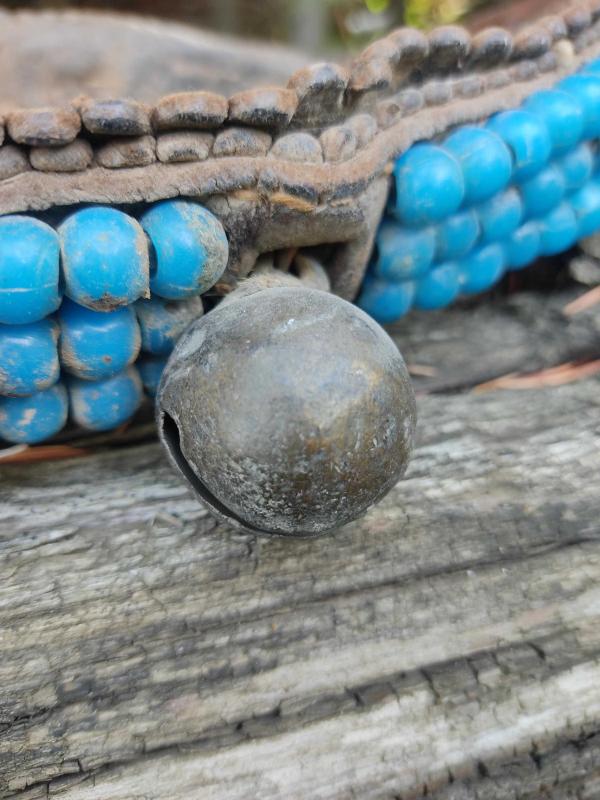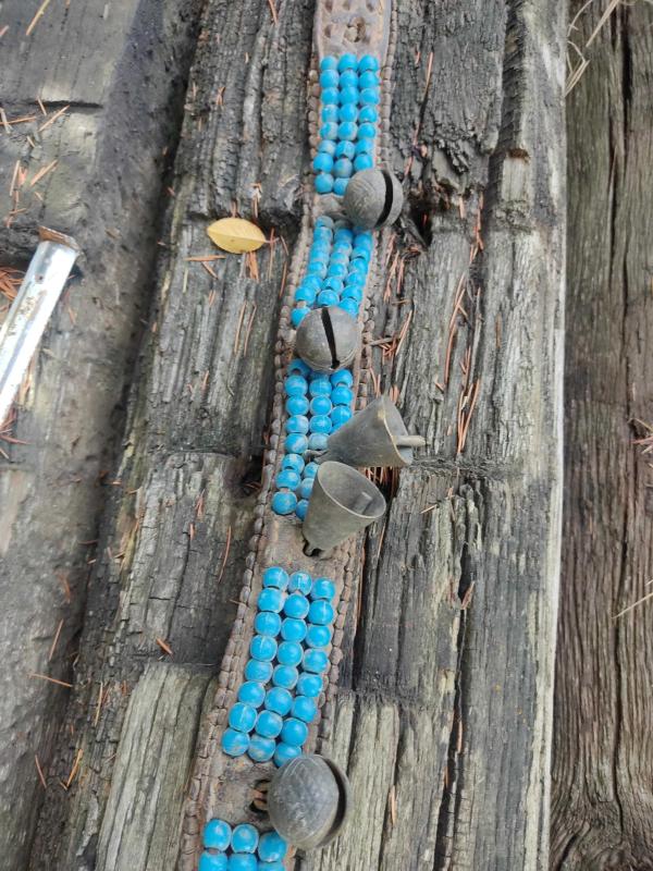Üzerindeki bronz olan beş çan ve deri tasma çok eskidir.