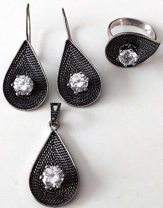ESKİ DÖNEM ANTİK GÜMÜŞ MUHTEŞEM TAKI SETİ (BİR YÜZÜK-BİR ÇİFT KÜPE-BİR KOLYE UCU) 1RRR1R1 ÇOK NADİR başlıklı antika/koleksiyon objesi Osmanlı menşe’lidir. 1920-1940 arası dönemine aittir.