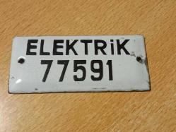 ** ESKİ EMAYE ELEKTRİK SAYAÇ NUMARASI (77591) ** 9.2 x 4.2 cm.ebadında,göründüğü gibi gayet iyi kondüsyonda,eski emaye elektrik sayaç numarasıdır...