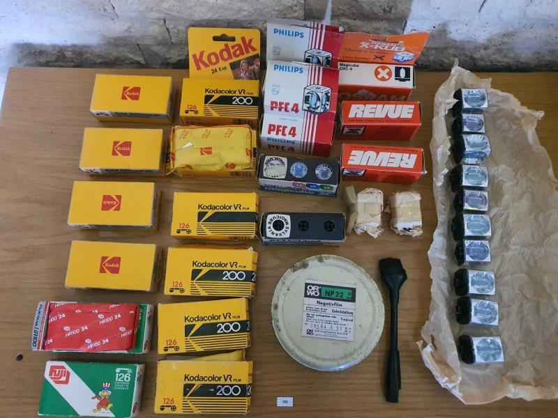 1-KODAK VERİCHROME PAN 4 Adet açılmamış orj. Kutusunda 1960 -80 2-KODACOLOR VR 200-126 Film 6 adet orj. Kutusunda hiç açılmamış 1970 - 90 lar 3-FUJİ 126 2 Adet Orj. Kutusunda hiç açılmamış 1980 ler 4- FLAŞ CUBE kutulu PHİLİPS/SYLVANIA/OSRAM/REVUE Markalarda orj. kutusunda tek kullanımlık hiç kullanılmamış 7 kutu 5-FLAŞ CUBE kutusuz orj. kağıdına sarılı hiç kullanılmamış tek kullanımlık Flaş 12 adet 6-ORWO NP22Büyük makara film boş kutu Doğu Almanya Üretimi