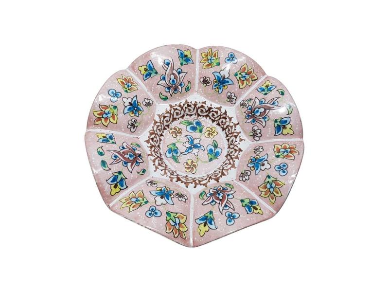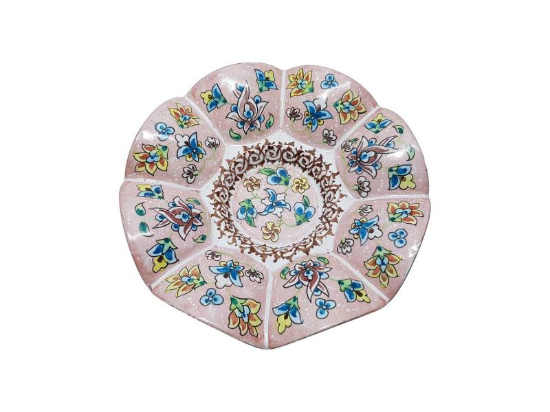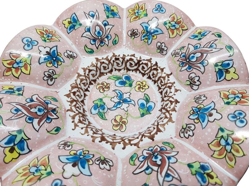 İSFAHAN İŞİ EL YAPIMI BAKIR ÜZERİ EMAYE İŞÇİLİKLİ ÇİÇEKLERLE SÜSLÜ ŞEKERLİK ÇAP: 16 CM