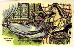 ESKİ İSTANBUL HAREM GÜZELİ TEMALI FAYANS ÜZERİ SULU ÇIKARTMA...