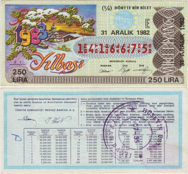 ESKİ MİLLİ PİYANGO 31 ARALIK 1982 ÇEYREK 1/4 BİLET. YILBAŞI 250 LİRA E SERİSİ., 2 gün önce satışa sunulmuştur.