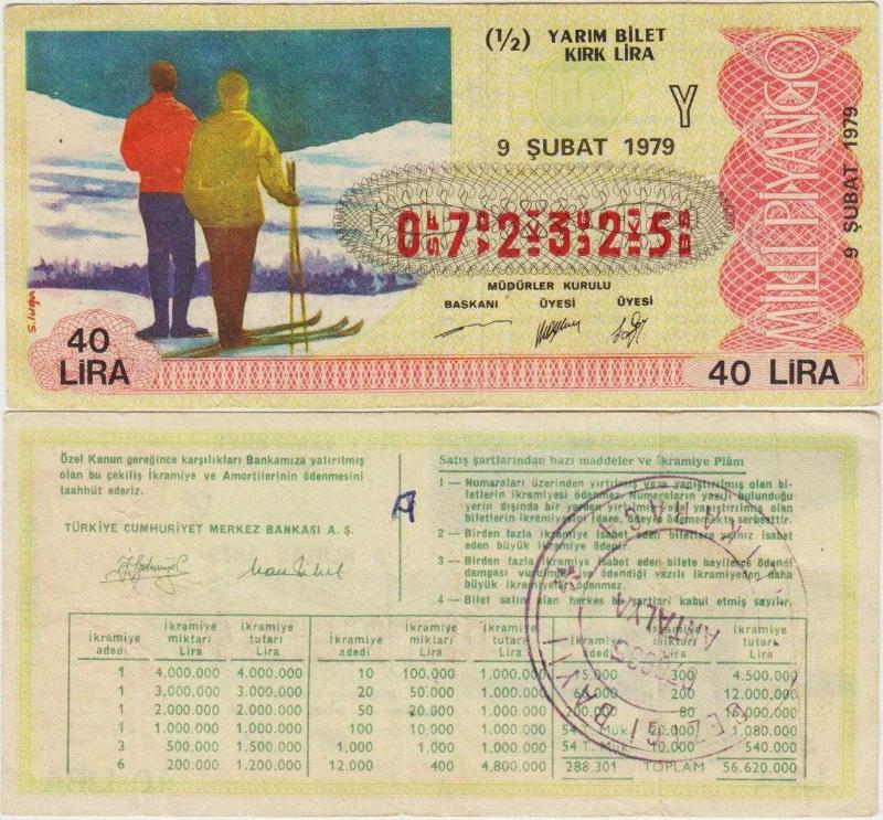 ESKİ MİLLİ PİYANGO BİLETİ 9 ŞUBAT 1979 YARIM., 20 gün önce satışa sunulmuştur.