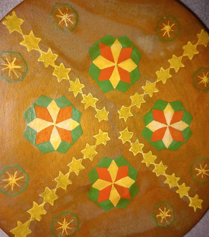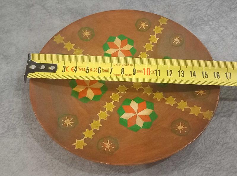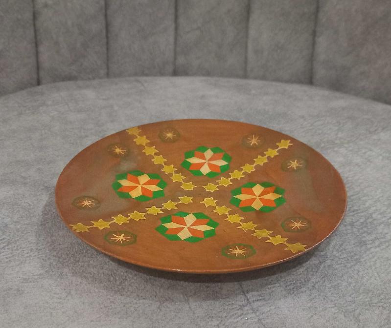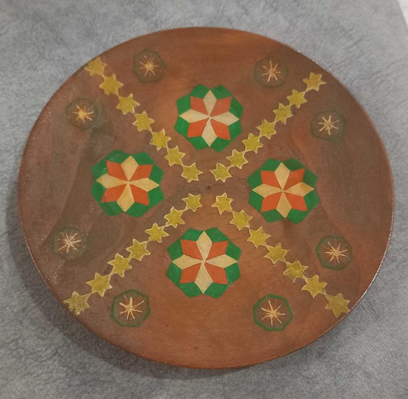 ESKİLERDEN EL YAPIMI VE EL BOYAMASI AHŞAP TABAK. ZARİF DESENLERLE İŞLENMİŞ. KONDİSYON YÜKSEK KOLEKSİYONLUK NADİR