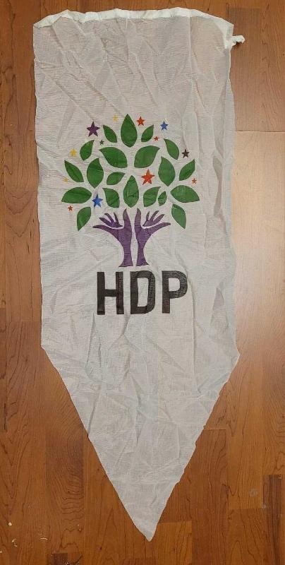 ESKİLERDEN HDP BAYRAĞI. başlıklı antika/koleksiyon objesi Türkiye menşe’lidir. Objenin ait olduğu dönem bilinmeketedir.