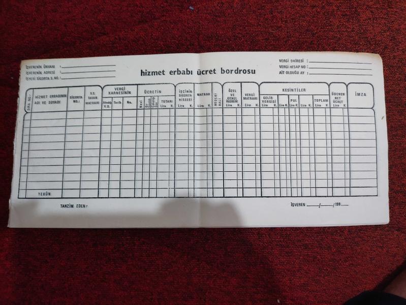 1970 Lİ YILLARDAN HİZMET ERBABI ÜCRET BODROSU SIFIR ÜRÜN EBATLAR 18.5 CM E 41 CM. DİĞER ÜRÜNLERİMEDE BAKMAYI UNUTMAYIN