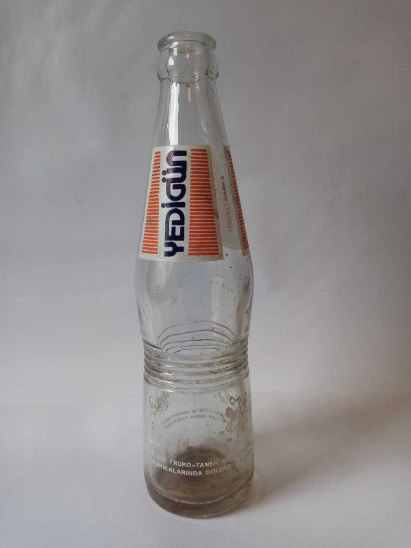 ESKİLERDEN YEDİGÜN MEYVELİ GAZOZ ŞİŞESİ... başlıklı antika/koleksiyon objesi Türkiye menşe’lidir. 1980-1999 arası dönemine aittir.