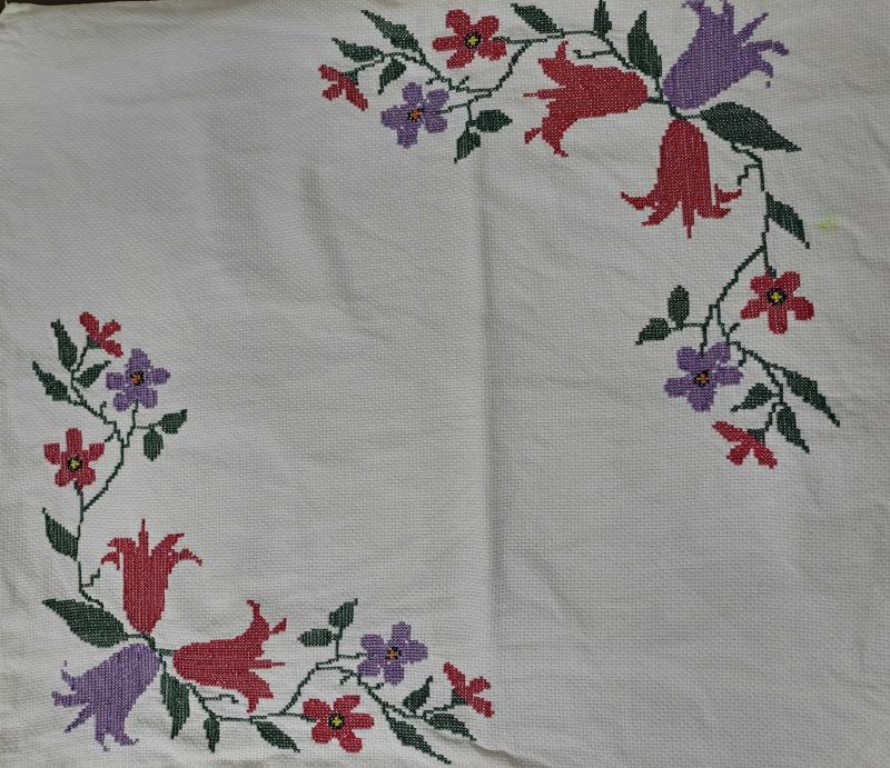 ETAMİN ÜSTÜ KANAVİÇE İŞLEMELİ KIRLENT SANDIKTAN CIKMA IYI DURUMDA. Bir iki lekeler var .