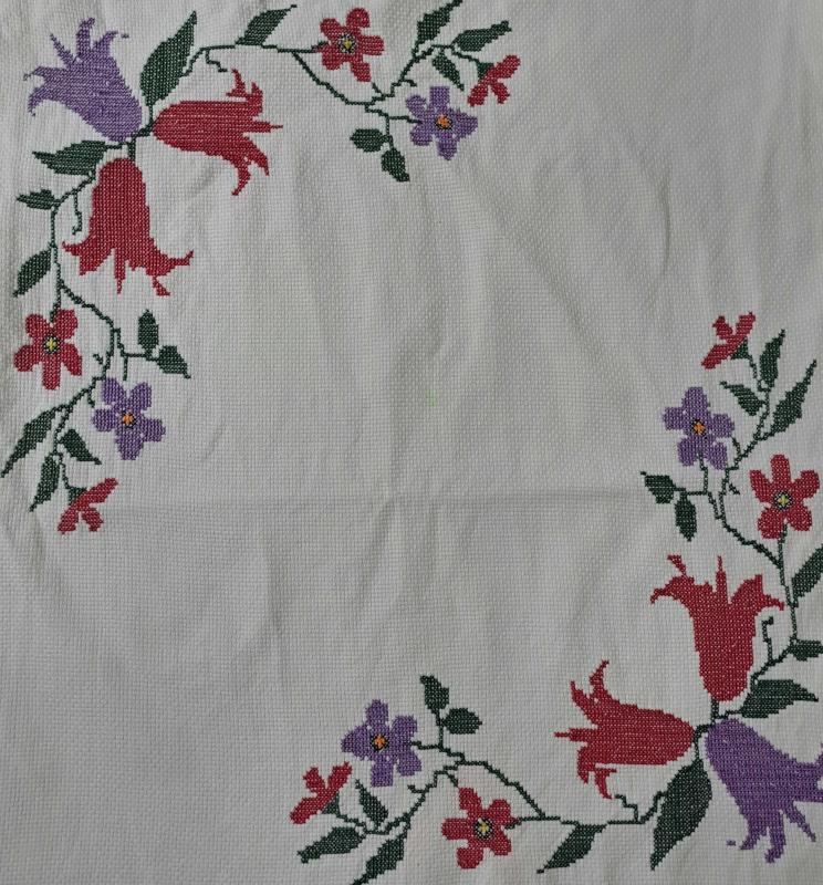 ETAMİN ÜSTÜ KANAVİÇE İŞLEMELİ. SANDIKTAN ÇIKMA BIR İKI LEKELERI VAR.