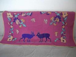 ETAMİN ÜZERİNE KANAVİÇE İŞLEMELİ - HARİKA BİR PANO - ÇİFT GEYİK MOTİFİ - 82X145 CM