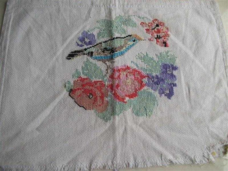 ETAMİN ÜZERİNE KANAVİÇE İŞLEMELİ - KIRLENT - KUŞLU - RENGİ SOLMUŞ başlıklı antika/koleksiyon objesi Türkiye menşe’lidir. 1950-1999 arası dönemine aittir.