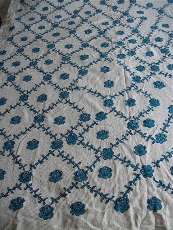 ETAMİN ÜZERİNE KANAVİÇE İŞLEMELİ - TEK KİŞİLİK YATAK ÖRTÜSÜ - 131X180 CM başlıklı antika/koleksiyon objesi Türkiye menşe’lidir. 1950-1999 arası dönemine aittir.