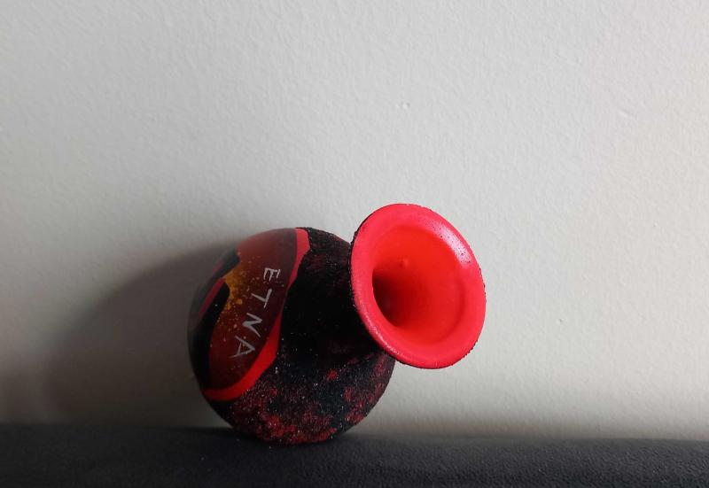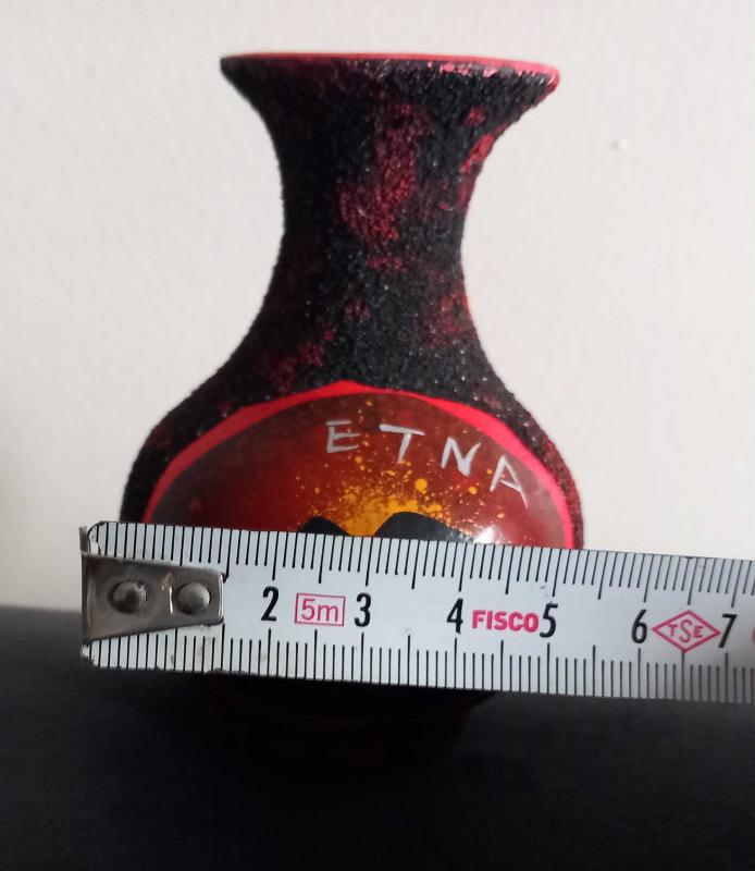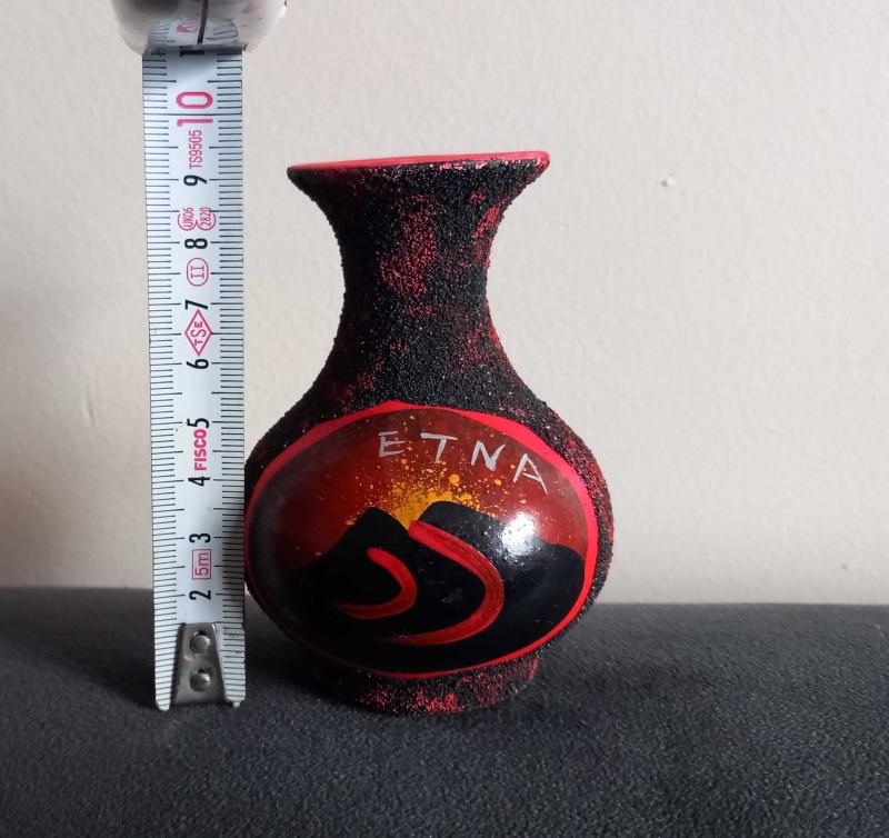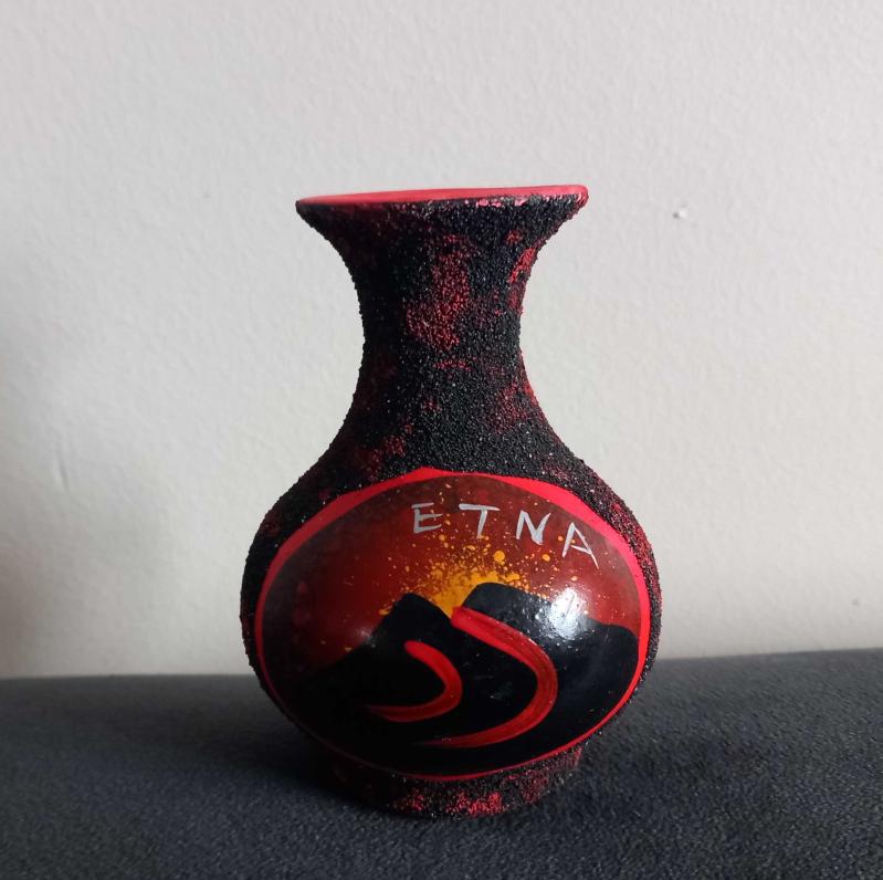 ETNA YANARDAĞI TEMALI EL YAPIMI MİNİ ÇÖMLEK VAZO. KONDİSYON YÜKSEK KOLEKSİYONLUK NADİR TURKİYE'DE PEK SATIŞI YOK