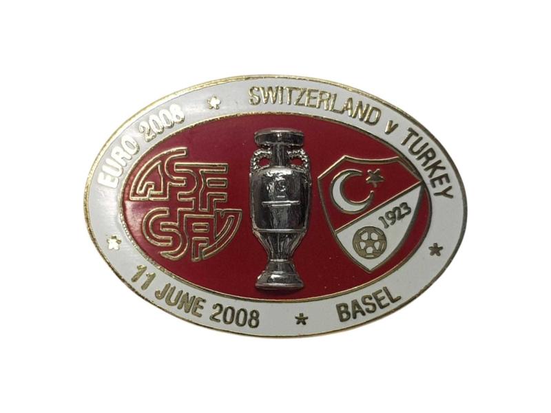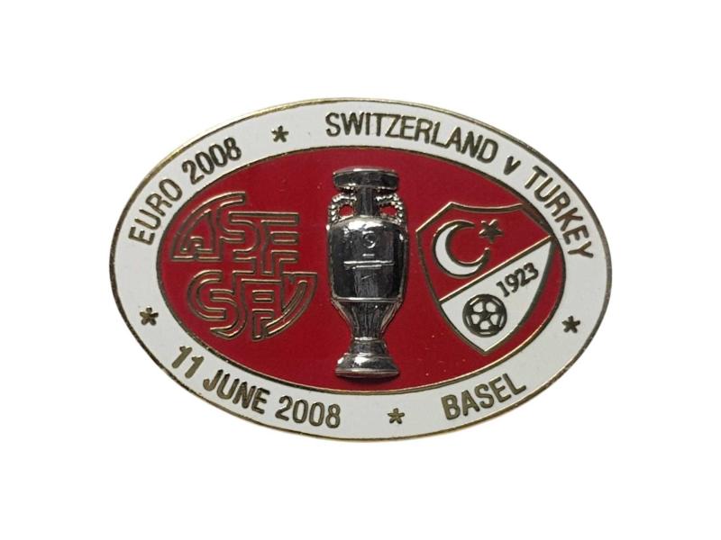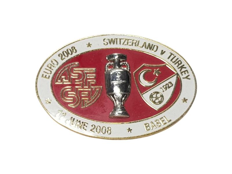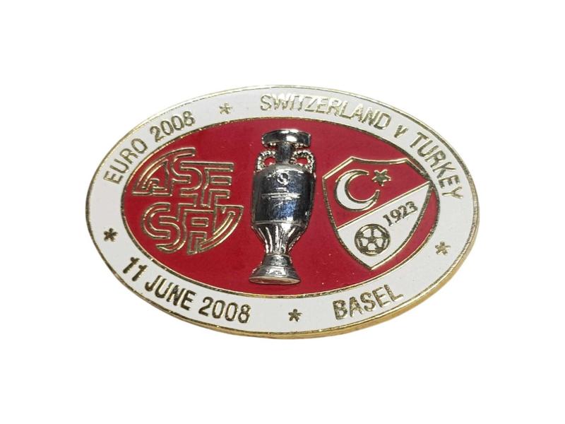 EURO 2008 AVRUPA FUTBOL ŞAMPİYONASINDA 11 HAZİRAN 2008'DE BASEL'DE OYNANAN İSVİÇRE - TÜRKİYE MAÇINA ÖZEL YAPILMIŞ ÇOK NADİR MİNELİ ROZET. EBAT: 3,8 X 2,6 CM
