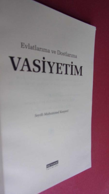 EVLATLARIMA VE DOSTLARIMA VASİYETİM, Seyda Muhammed Konyevi tarafından kaleme alınmıştır. Kitap 2013 yılında REYHANI YAYINLARI tarafından [İSTANBUL] yayınlanmıştır. 168 sayfadır. EVLATLARIMA VE DOSTLARIMA VASİYETİM adlı eser Türkçe dilindedir.