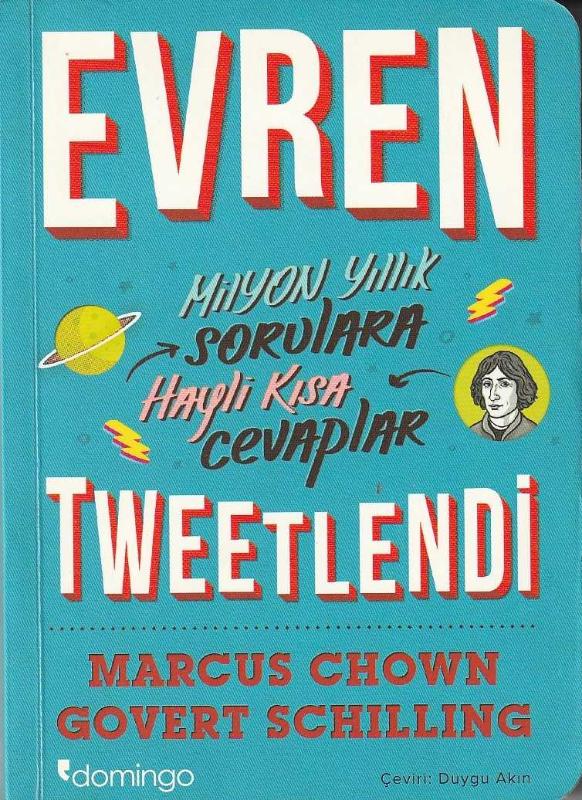 EVREN TWEETLENDİ: MİLYON YILLIK SORULARA HAYLİ KISA CEVAPLAR, MARCUS CHOWN - GOVERT SCHILLING tarafından kaleme alınmıştır. Kitap 2012 yılında DOMİNGO tarafından [İSTANBUL] yayınlanmıştır. Bu baskının çevirisi DUYGU AKIN tarafından yapılmıştır. 214 sayfadır. EVREN TWEETLENDİ: MİLYON YILLIK SORULARA HAYLİ KISA CEVAPLAR adlı eser Türkçe dilindedir.