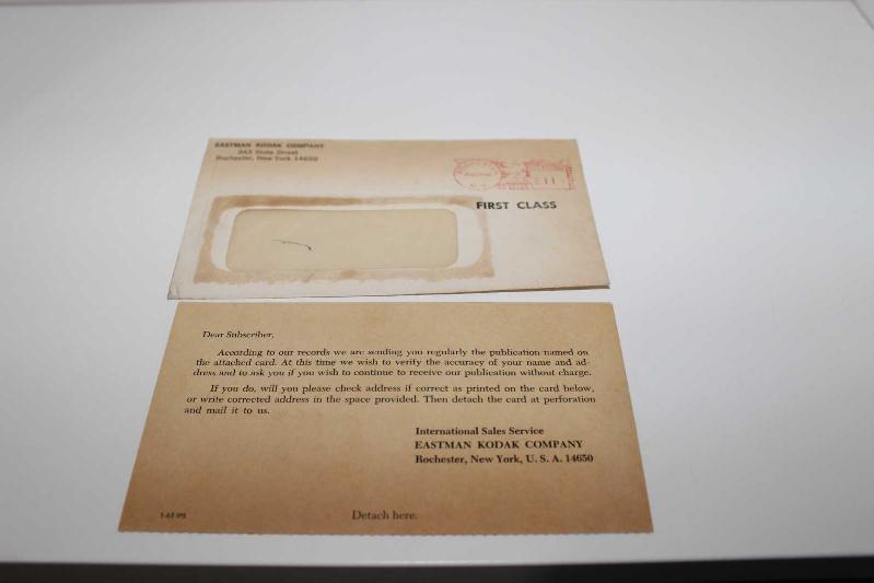 Eastman Kodak Company abonelik formu ve zarfı, 1965 damgalı, en son 3 gün önce güncellenmiştir.