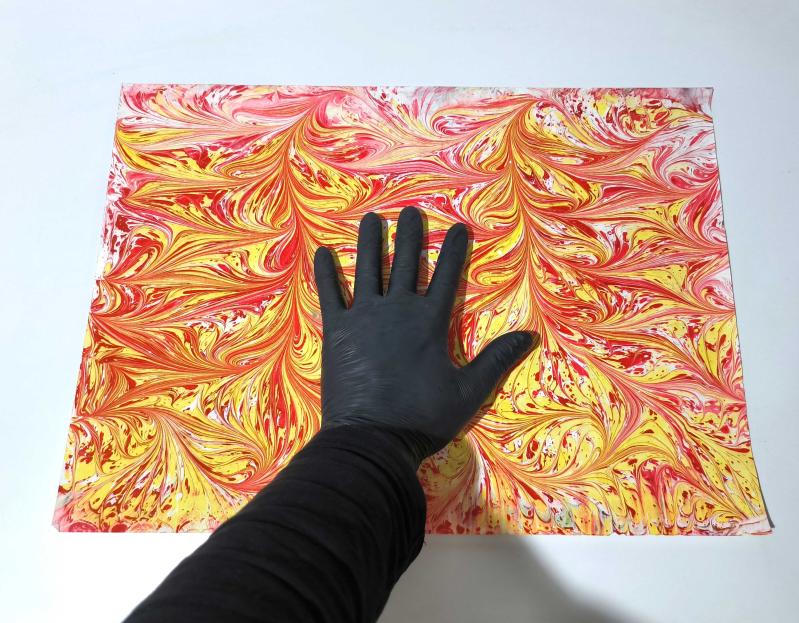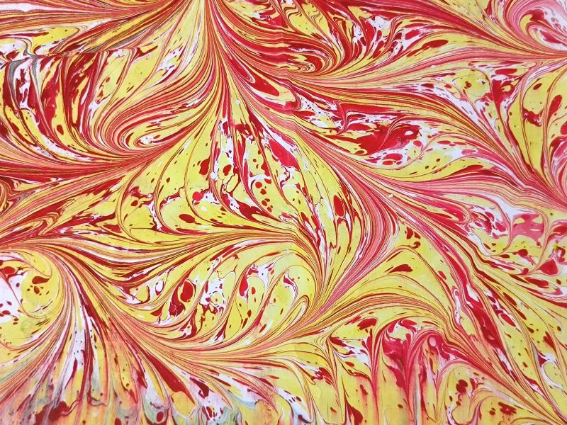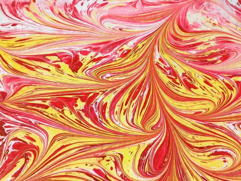 Ebru Sanatı - El İşi Ebru - Çiçek Desenli - Duvar Dekoru - Sanatçı: Muhammed Aydın - 2013 Tarihli - Sarı - Kırmızı Renkli başlıklı antika/koleksiyon objesinin menşei belirtilmemiştir. Objenin ait olduğu dönem bilinmeketedir.