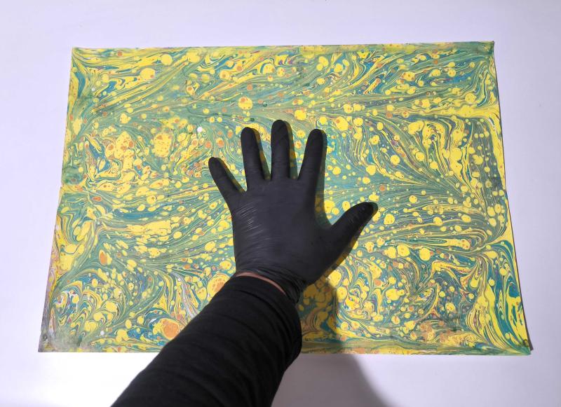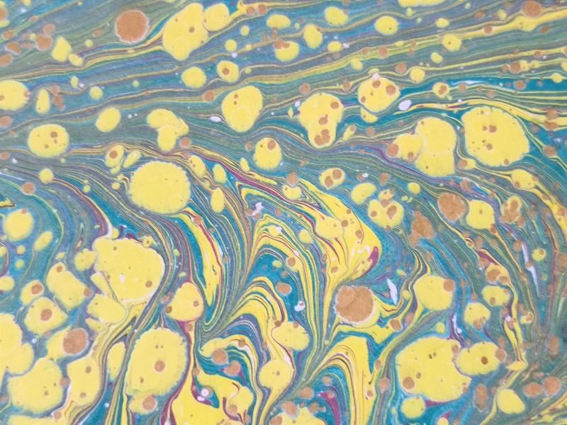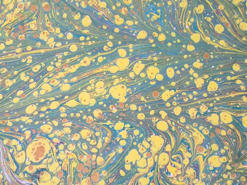 Ebru Sanatı - El İşi Ebru - Desenli - Duvar Dekoru - Sanatçı: Muhammed Aydın - 2013 Tarihli - Yeşil - Sarı Renkli başlıklı ürün, Antika-Koleksiyon, Hobi-Sanat > Antika > Mesleki Objeler > Büro, Kırtasiye Malzemeleri kategorisinde İkinci El olarak satışa sunulmuştur.