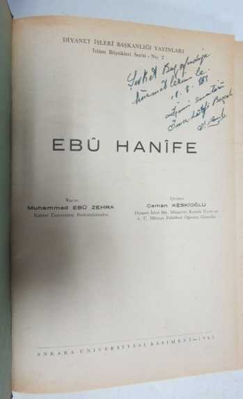İçindekiler: Ebu Hanife'nin Hayatı, İlmi, Bulundurduğu Vasıflar, Üstatları, Yaşadığı Devir, Sahabe ve Tabiin Fetvaları, Dini Fırkalar, Sünnet, Tahriç ve Tercih. Döneminin bez cildinde. (Künye sayfasında hediye yazısı.) Sayfa Bilgisi: 427 s. Ebat: 16x24