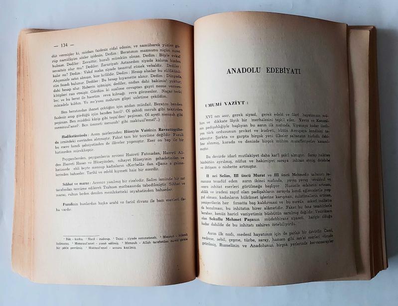 5. baskı Sayfa Sayısı: 451 s. İçindekiler: Methal, Türk Tarihine Umumi Bir Bakış, İlk Edebi Mahsüller, Halk ve Tasavvufi Halk Edebiyatı, Anadolu Edebiyatı, İtalyan Edebiyatı. Kapaksız. (Cilde hazır hale getirilmiş.) (İlk sayfada yıpranma. Künye sayfası yok. 47-50. sayfalarda küçük bir kopuk.)