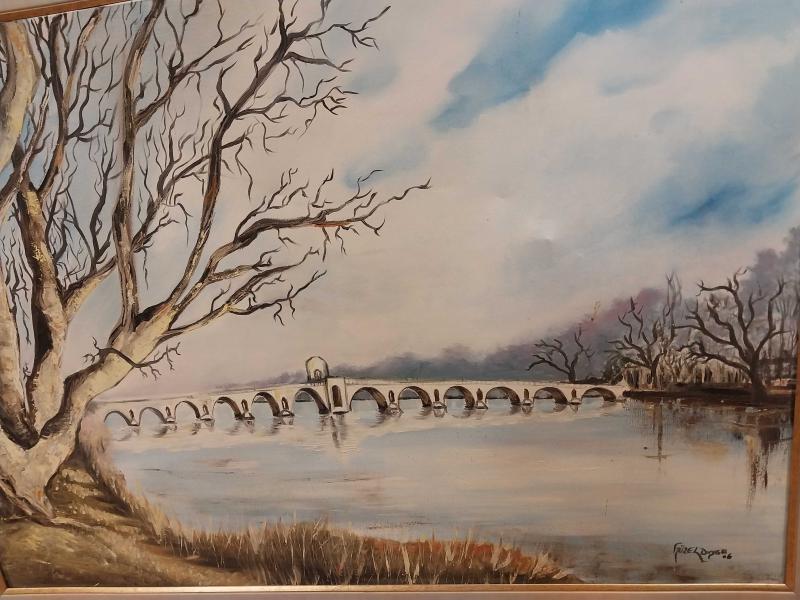 Edirne Meriç Köprüsü ve Meriç Nehri. Yağlı Boya.Sanatçı İmzalı. 95 x 65 cm.