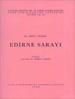 Edirne Sarayı, Rifat Osman tarafından kaleme alınmıştır. Eser Süheyl Ünver (Ord.Prof.Dr.) editörlüğünde hazırlanmıştır. Kitap 1989 yılında Türk Tarih Kurumu tarafından [Ankara] 9789751601506 ISBN kodu ile yayınlanmıştır. Satışta olan kitap, yayınevinin 1. baskısıdır. 159 sayfadır. Sayfa bilgisi 1. Hamur olarak belirtilmiştir. Edirne Sarayı adlı eser Türkçe dilindedir.