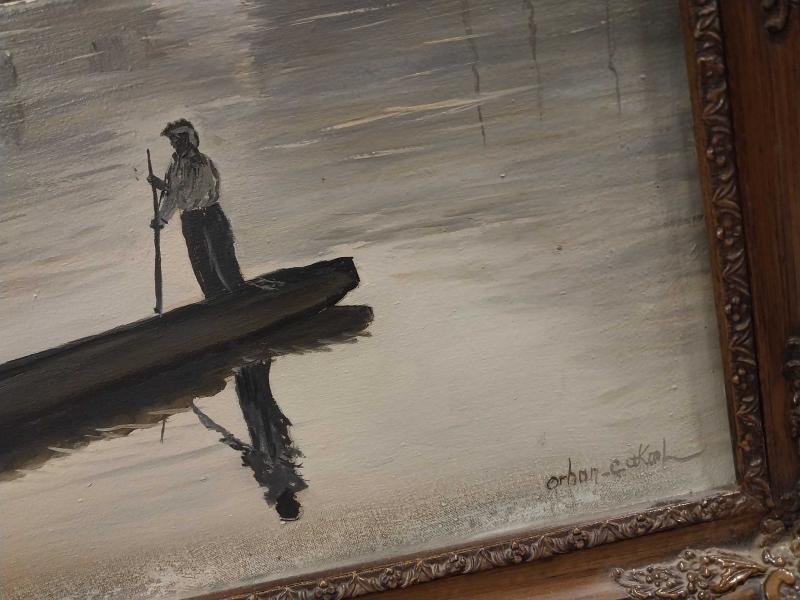 Edirne Tunca Köprüsü ve Tunca Nehrinde Balıkçı.Yağlı Boya.Sanatçı İmzalı. 75 x 55 cm.