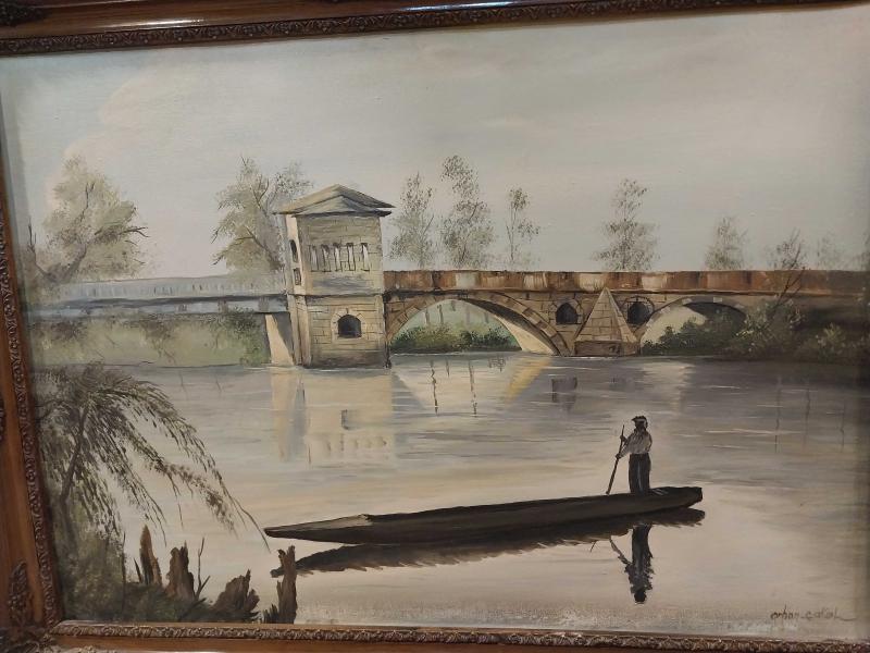 Edirne Tunca Köprüsü ve Tunca Nehrinde Balıkçı.Yağlı Boya.Sanatçı İmzalı. 75 x 55 cm. başlıklı antika/koleksiyon objesi Türkiye menşe’lidir. 1960-1979 arası dönemine aittir.