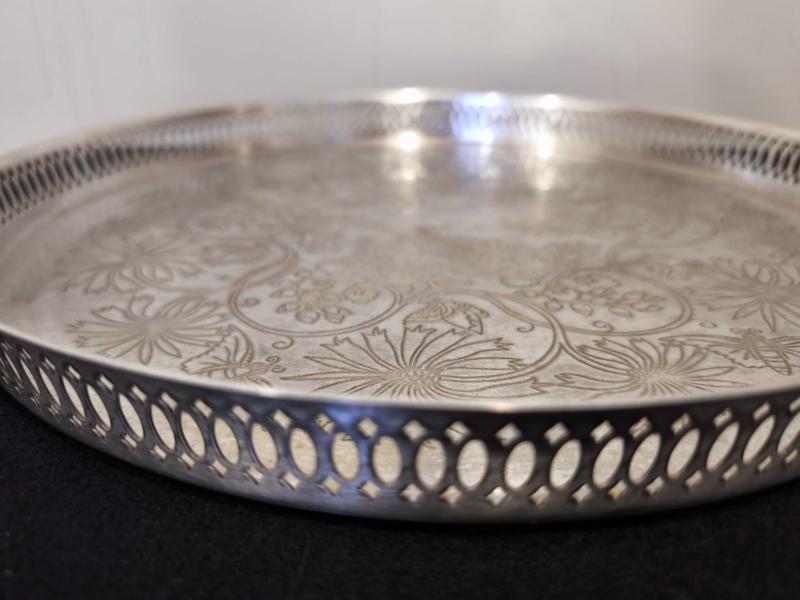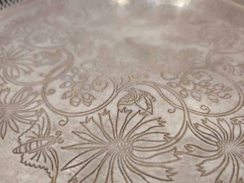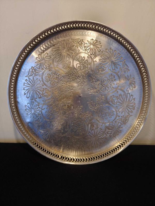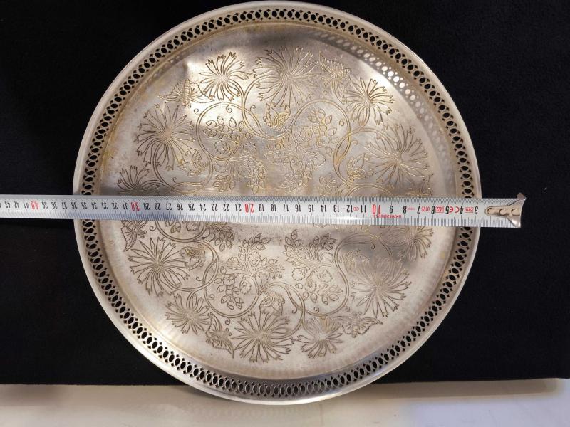 Eski bir tepsi ama işçilik ve kondisyon efsane. İnce kalem işçilikli . Damgalı ve gümüş kaplaması yüzde 90 seviyesinde korunmuş. Muadili çok nadir çıkar. Fırsat !! Not: Ürünlerime fiyat teklifi vermekten çekinmeyiniz.