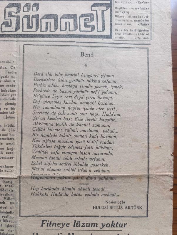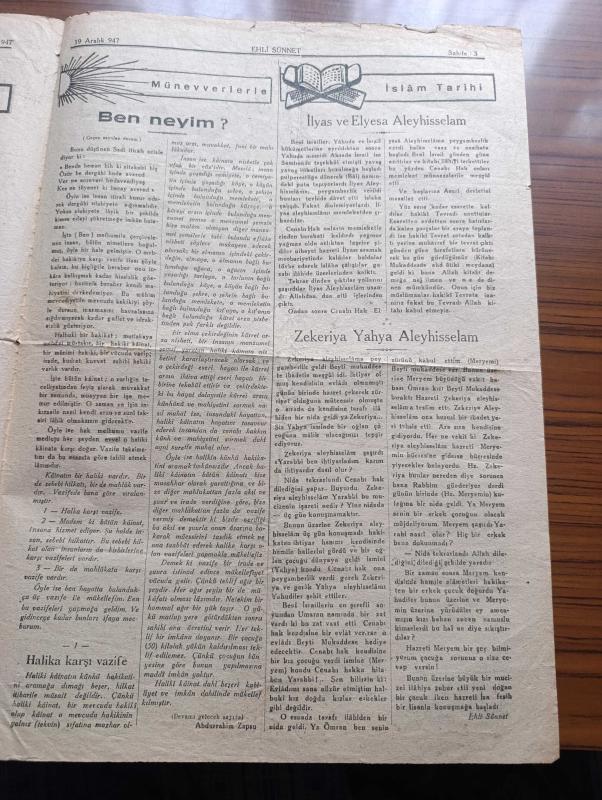 Ehli Sünnet Gazetesi - Turkish Newspaper - 19 Aralık 1947 - din ve laiklik - Bend şiiri yazan Nesimioğlu Hulusi Bitlis Aktürk - fitneye lüzum yoktur - Hz Muaviye ashabı Resulullah'tandır - İslamiyet dini dört ana prensibi ortaya atmıştır itikat ibadet ahlak muamelat - şöyle iman ediyorum - Batıniye Mezhebi - ibadet cenaze namazı - teşkilat-ı esasiye kanunu madde 75 hiç kimse felsefi inancından din ve mezhebinden dolayı kınanamaz - Teşkilatı esasiye kanunu madde 68 her Türk hür doğar ve hür Yaşar - cenaze namazı için 6 şart - komiteye girenlerin 7 derecesi vardır imam hüccet zümüdda ebvab daimi mezun mükellib mümin - münevverlerle İslam tarihi - ben neyim - İlyas ve Elyesa Aleyhisselam - Zekeriya Yahya Aleyhisselam - Muaviye fevkalade akil ve zekavete fesahat ve belagata ve kuvveti natıkaya malik gayetle sabur ve halim ve Kerem ve savahetle muttasıf bir zattır - buhari Şerif kitabının 4. Cüzü 184. Peygamber efendimiz ne buyuruyor - biraz da Neşe inat ettik fakat - Harun Reşit hazreti, Abdurrahim Zapsu tarafından kaleme alınmıştır. Ehli Sünnet Gazetesi - Turkish Newspaper - 19 Aralık 1947 - din ve laiklik - Bend şiiri yazan Nesimioğlu Hulusi Bitlis Aktürk - fitneye lüzum yoktur - Hz Muaviye ashabı Resulullah'tandır - İslamiyet dini dört ana prensibi ortaya atmıştır itikat ibadet ahlak muamelat - şöyle iman ediyorum - Batıniye Mezhebi - ibadet cenaze namazı - teşkilat-ı esasiye kanunu madde 75 hiç kimse felsefi inancından din ve mezhebinden dolayı kınanamaz - Teşkilatı esasiye kanunu madde 68 her Türk hür doğar ve hür Yaşar - cenaze namazı için 6 şart - komiteye girenlerin 7 derecesi vardır imam hüccet zümüdda ebvab daimi mezun mükellib mümin - münevverlerle İslam tarihi - ben neyim - İlyas ve Elyesa Aleyhisselam - Zekeriya Yahya Aleyhisselam - Muaviye fevkalade akil ve zekavete fesahat ve belagata ve kuvveti natıkaya malik gayetle sabur ve halim ve Kerem ve savahetle muttasıf bir zattır - buhari Şerif kitabının 4. Cüzü 184. Peygamber efendimiz ne buyuruyor - biraz da Neşe inat ettik fakat - Harun Reşit hazreti adlı eser Türkçe dilindedir.