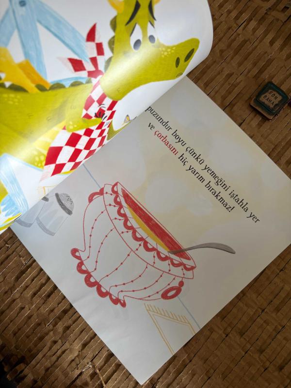 Kitap, 22 cm genişliğinde 22 cm uzunluğundadır.
