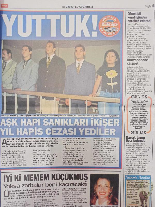 Ekip Gazetesi - 31 Mayıs 1997 - Jale Baysal - Güzel baldız yuva yıktı - Okan Bayülgen - Başak Yeğen - Müjde Ar - Buse Akgün - Yasemin Mutlu - Gerçek hayat hikayeleri - adlı eser Türkçe dilindedir.
