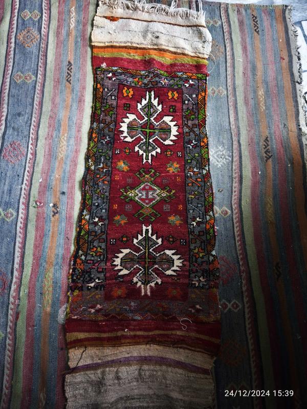El Dokuma Anadolu Eski Antika Halı yolluk(50x150cm)