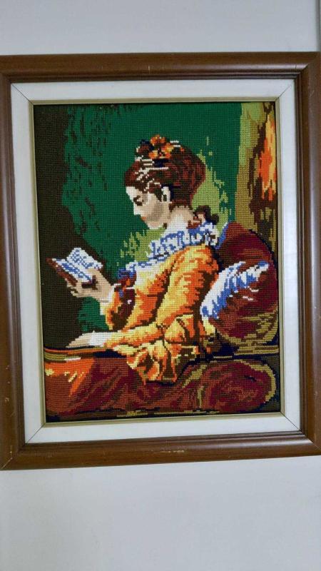 Zamanın sabrını ve zarafetini ilmek ilmek taşıyan özel bir parça… Tamamı el emeği etamin işçiliği ile hazırlanmış bu tablo, klasik sanatın dinginliğini ve geçmişin estetik anlayışını yansıtıyor. Okuyan kadın figürü; bilgiye, sessizliğe ve zarafete bir selam niteliğinde. Renk geçişleri ve detay yoğunluğu, uzun süreli ve özenli bir çalışmanın ürünü olduğunu açıkça gösteriyor. 🖼️ Ölçü: 46 x 56 cm 🪡 Teknik: El işi etamin 🖼️ Çerçeve: Orijinal, dönemsel ahşap çerçeve 🏺 Durum: Temiz, yıpranma yok Koleksiyonluk, dekoratif ve ruhu olan bir eser arayanlar için kaçırılmayacak bir parça. Antika sevenlerin duvarında sessiz ama güçlü bir hikâye anlatır.