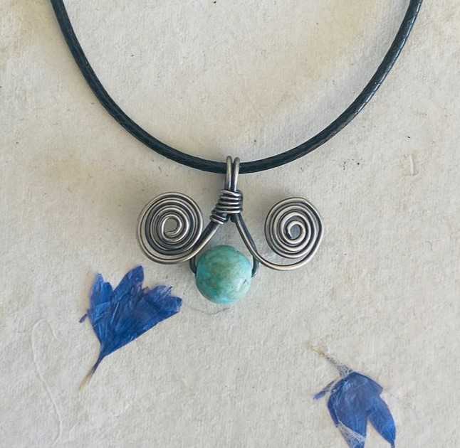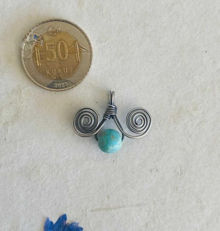 El İşçiliği Gümüş Firuze Taşlı Kolye Ucu (1,97) * Metal kısımları 925 ayar gümüş telden yapılmıştır. * El işçiliği, kendi tasarımım ve imalatım. * Firuze tamamen doğaldır. Zamanla ton farklılaşması olabilir. * Gümüş kısımları kısmen oksitlidir. * Fotoğraflardaki ürün gönderilecektir.