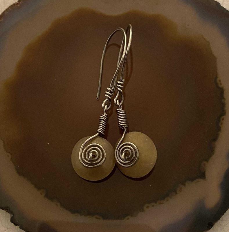 El işçiliği Gümüş Serpantin (Serpentine) Küpe , 5.10gr. * Metal kısımları 925 ayar gümüşten yapılmıştır. * El işçiliği, kendi tasarımım ve imalatım. * Taşlar tamamen doğaldır. * Gümüş kısımları kısmen oksitlidir. * Fotoğraflardaki ürün gönderilecektir. * Zevkle kullanacağınız orijinal ürün.