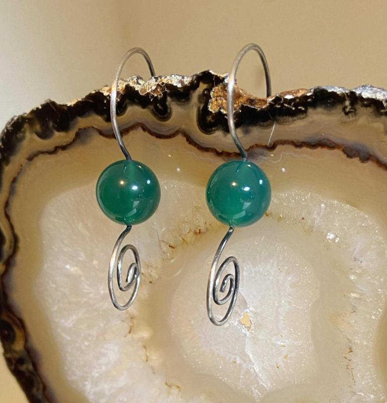 El işçiliği Gümüş, Yeşim Taşlı Küpe * Metal kısımları 925 ayar gümüş telden yapılmıştır. 3.98 gr * El işçiliği, kendi tasarımım ve imalatım. * Gümüş kısımları kısmen oksitlidir. * Fotoğraflardaki ürün gönderilecektir. * Zevkle kullanacağınız özel tasarım ürün.