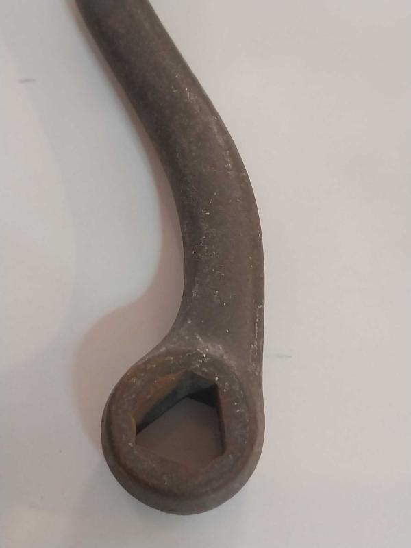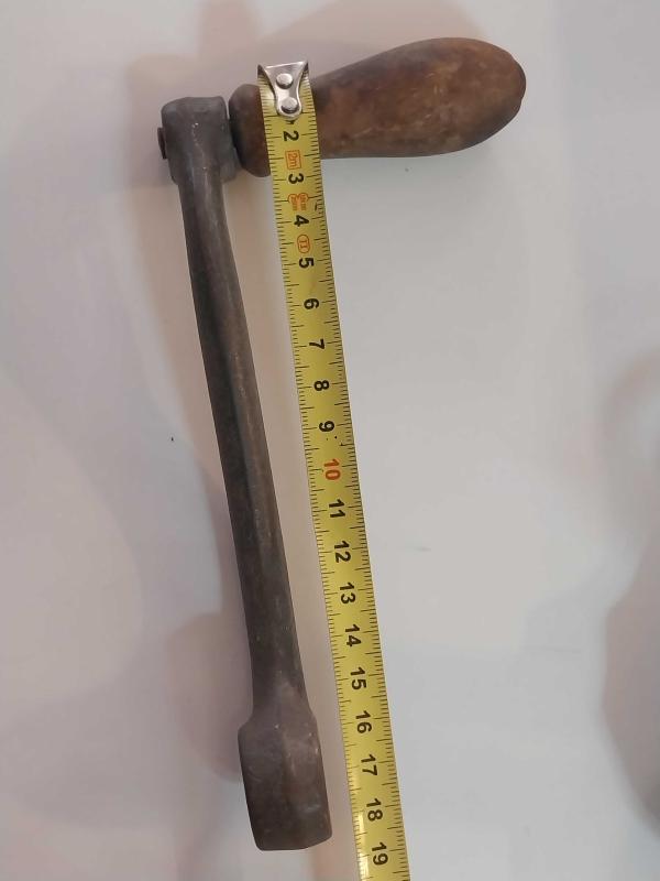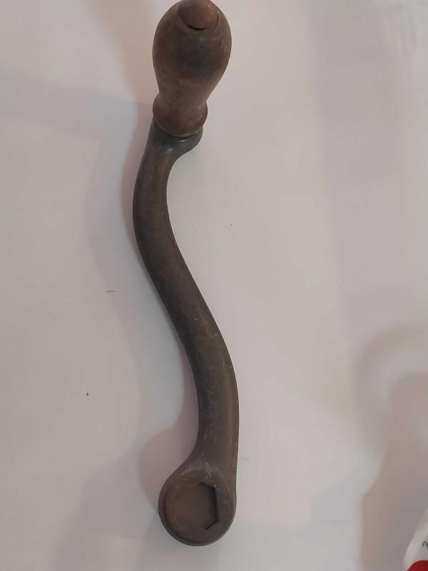 El Krankı, Bu görseldeki nesne, eski dikiş makineleri, fonograflar veya diğer mekanik cihazlar için kullanılan antik bir el krankıdır. Malzeme: Genellikle dökme demir veya metalden üretilmiş sağlam bir gövdeye sahiptir. Özellik: Döner bir ahşap veya plastik tutamağı bulunur. İşlev: Döndürme hareketini mekanik enerjiye çevirerek makineyi manuel olarak çalıştırmak için kullanılır. Kullanım Alanı: Vintage dikiş makineleri, müzik kutuları veya eski el aletleri için yedek parça veya koleksiyon objesi olarak değerlidir.