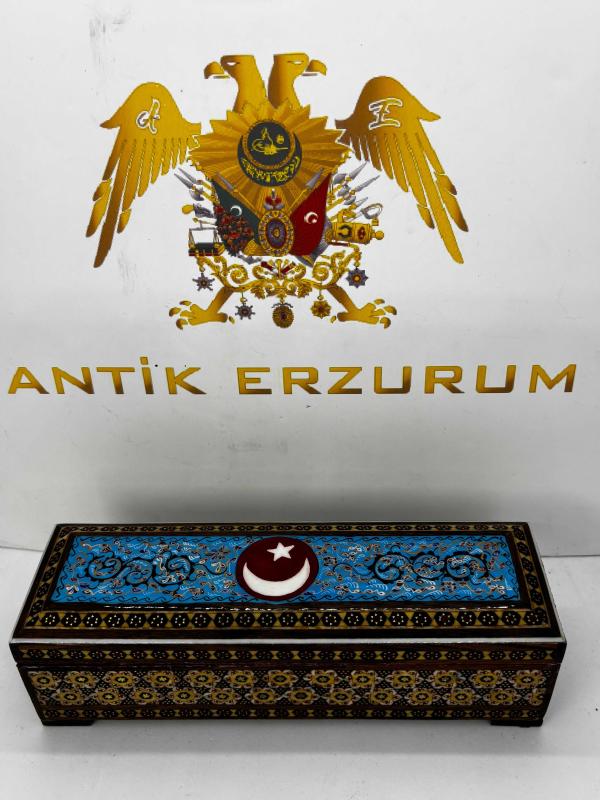 El Yapımı Hatem Sanatı Ay Yıldız desenli Mücevher Kutusu başlıklı antika/koleksiyon objesinin menşei belirtilmemiştir. 2000 ve sonrası dönemine aittir.